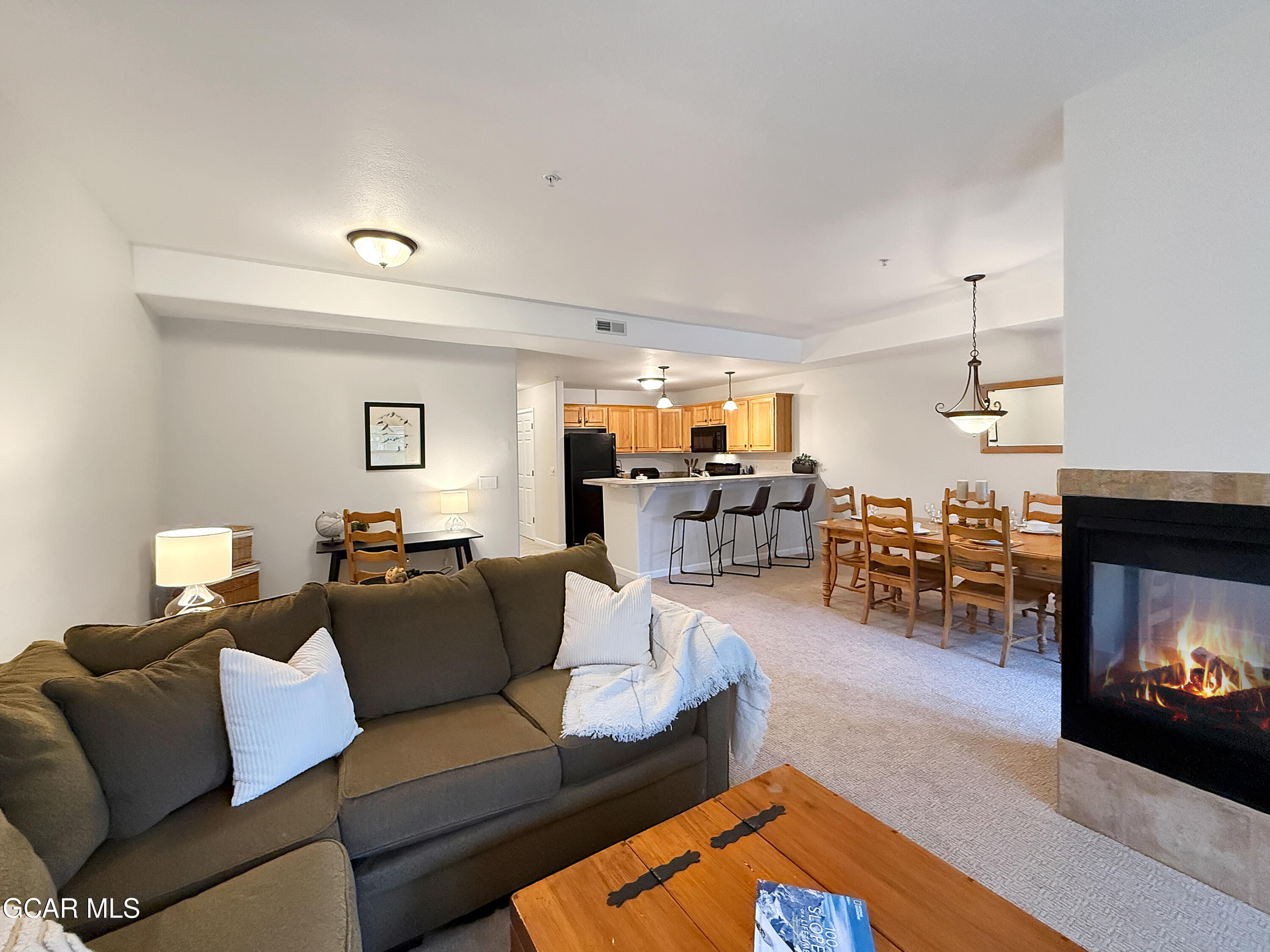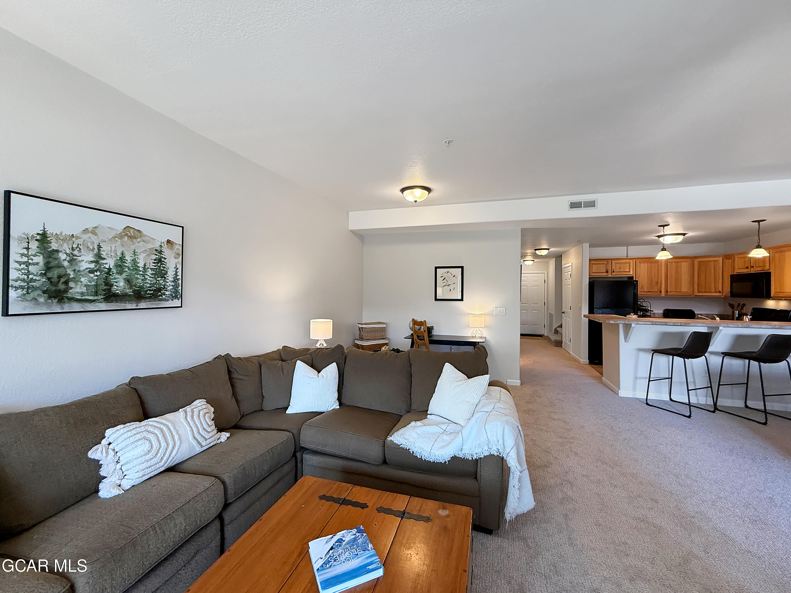 Cozy and bright 2 bedroom condo at Waterside West with an attached garage, beautiful views, and oversized bedrooms lives large. This mountain getaway has been completely refreshed with all new paint and carpet. Enter through the garage or the front door into a spacious, tiled entryway. Down the hall the living space is open and bright with a large dining area and comfortable seating centered on a 3-sided fireplace, plus a bonus workspace. There is plenty of room to add a queen Murphy bed for additional sleeping capacity. The covered balcony offers lovely mountain views. Enjoy a straight shot of Byers Peak from the dining room table! A full bathroom on the main level makes it easy to accommodate extra guests and upstairs, two large suites ensure privacy and comfort. The secondary bedroom... ... upstairs easily fits two sets of bunk beds. Waterside West is a stone's throw from the Fraser River Trail, close to public transportation and walkable to the grocery store. Access a plethora of shops and restaurants on foot or easily bike down to Winter Park for a multitude of summer activities. The ski resort is only a 10 minute drive or a short bus ride away and there are hundreds of miles of nearby trails to enjoy all summer long.